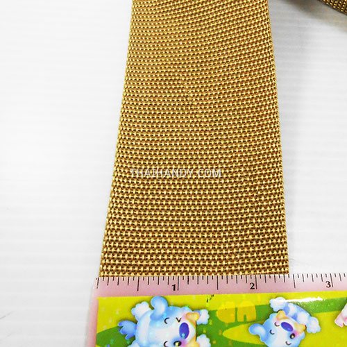 สายผ้า-ผ้ากุ๊น PP  ลายเวอร์จิ้น ขนาด 2.5 นิ้ว บรรจุ 50 เมตร สีกากีแกมทอง รูป 2