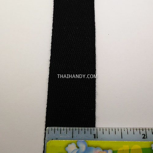 สายผ้า-ผ้ากุ๊น Cotton (ฝ้าย) ลายก้างปลา ขนาด 1 นิ้ว บรรจุ 1 เมตร สีดำ รูป 2